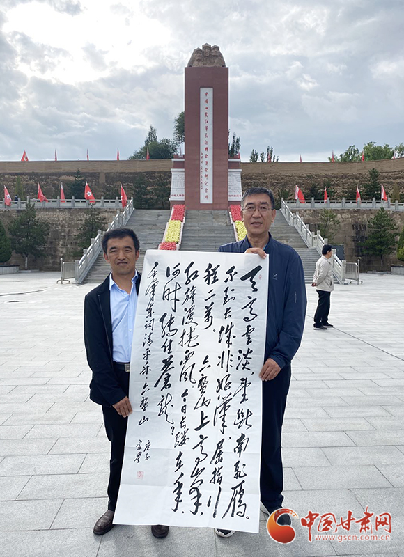 當(dāng)天,甘肅省延安精神研究會(huì)還向?qū)⑴_(tái)堡紅軍會(huì)師長(zhǎng)征會(huì)師紀(jì)念園贈(zèng)送了毛體書法作品。