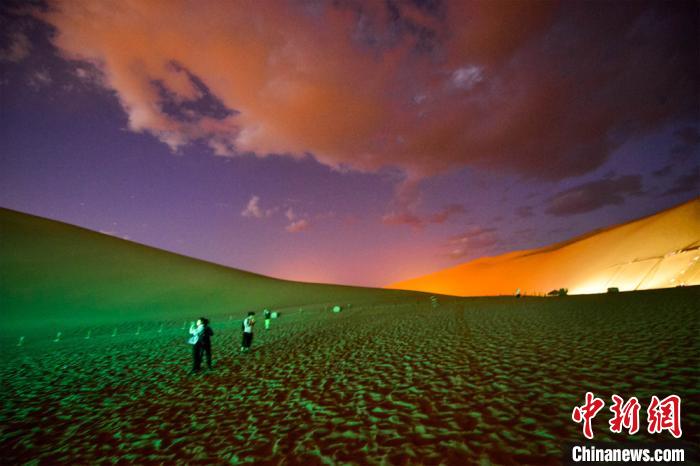 圖為游客觀賞大漠夜景。 王斌銀 攝