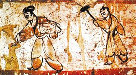 此后,在酒泉丁家閘十六國墓壁畫中就只有一牛牽引的雙轅犁了。說明魏晉時期是中國從二牛單轅犁過渡到一牛挽拉雙轅犁的時代,這一過渡的狀況及特點出現(xiàn)在嘉峪關(guān)地主墓葬壁畫中,又說明甘肅是這一重大農(nóng)技改革的地區(qū)之一。