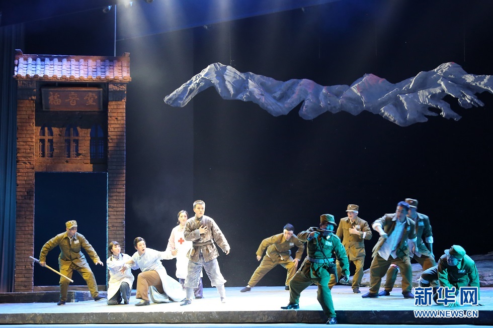 5月30日晚,大型秦腔現(xiàn)代戲《肝膽祁連》在蘭州音樂廳精彩上演?!陡文懫钸B》以真實的歷史故事改編,講述了愛國民主人士高金城營救紅西路軍戰(zhàn)士的感人故事。新華網(wǎng)發(fā)(王晶晶 攝)