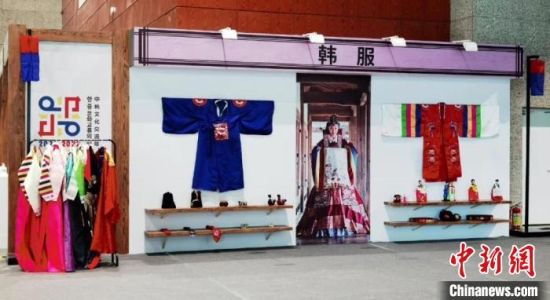 9月24日,“一會(huì)一節(jié)”期間,極具“韓風(fēng)”的主賓國(guó)韓國(guó)館在甘肅省敦煌市開館。圖為傳統(tǒng)韓服展示?!《∷肌z