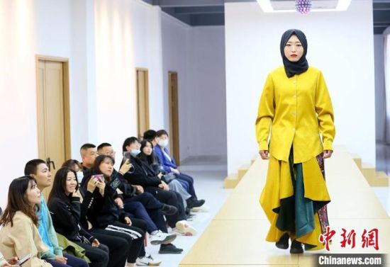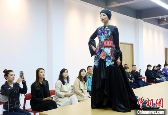 9月26日,甘肅東鄉(xiāng)繡娘身著帶有“東鄉(xiāng)刺繡”元素的民族服飾T臺(tái)走秀?!「哒埂z