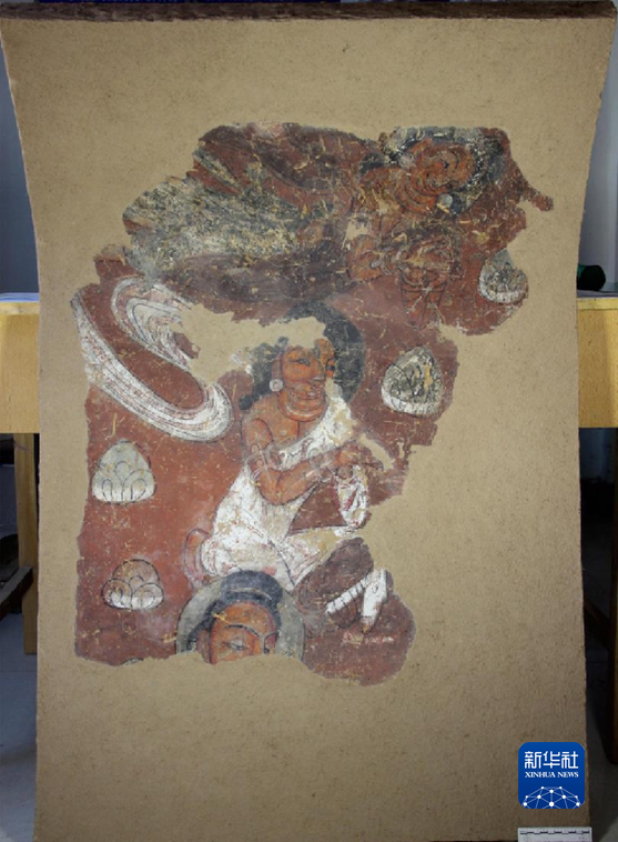 新華社蘭州12月15日電(記者白麗萍)記者15日從甘肅省武威市天梯山石窟保護研究所了解到,敦煌研究院在對天梯山石窟進行搬遷壁畫彩塑修復(fù)過程中,發(fā)現(xiàn)一幅完整的北涼飛天壁畫。