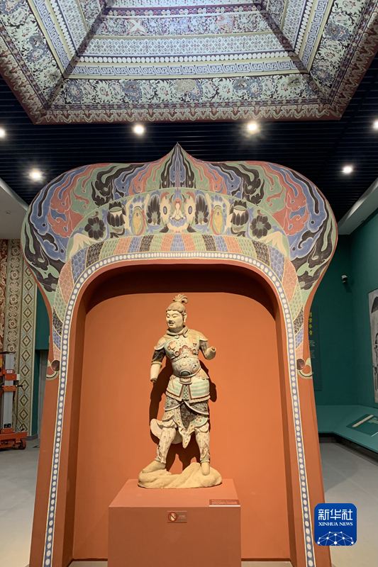 敦煌石窟藝術(shù)展展出的彩塑臨摹品。新華社記者 張玉潔 攝