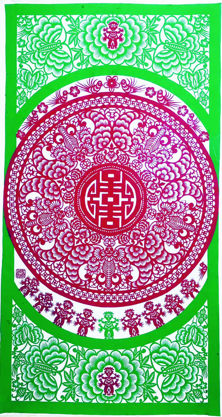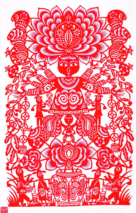 剪紙藝術(shù)題材多體現(xiàn)在祈福求安、避邪娛樂、孝道祭祀、喜事慶賀等等,例如五福娃娃、連年有余、大紅喜字、剪紙風(fēng)格也多樣化、多元化,剪紙作品一般初期主要是以對稱圖案為主,中后期主要發(fā)展成人物頭像、大型復(fù)雜圖案畫及反映和宣傳時代氣息的、人們喜聞樂見的多元素圖案,也將古代藝術(shù)和現(xiàn)代特征結(jié)合起來給人渲染一種藝術(shù)美、社會美、時代美的視覺欣賞、其作品妙趣橫生,秀美遒勁,雄渾大氣,喜聞樂見,愛不釋手,廣泛流傳在城鄉(xiāng)之間。當(dāng)下,剪紙藝術(shù)作為非物質(zhì)文化遺產(chǎn),深受社會各個階層的人士喜愛,把剪紙精神發(fā)揚光大。傳承非遺,是我們共同的使命。