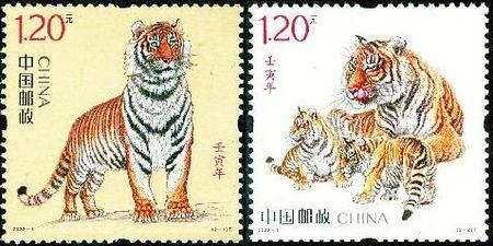 2022年是農歷壬寅年,即“虎”年,中國郵政于1月5日發(fā)行《壬寅年》特種郵票,全套2枚。這是中國郵政發(fā)行的第四輪生肖郵票的第七套。虎年生肖郵票仍然延續(xù)了第四輪生肖郵票的“家國”理念:兩枚郵票分別展示了國家的期許、家庭的企盼,組合而成濃濃的新春祝福。