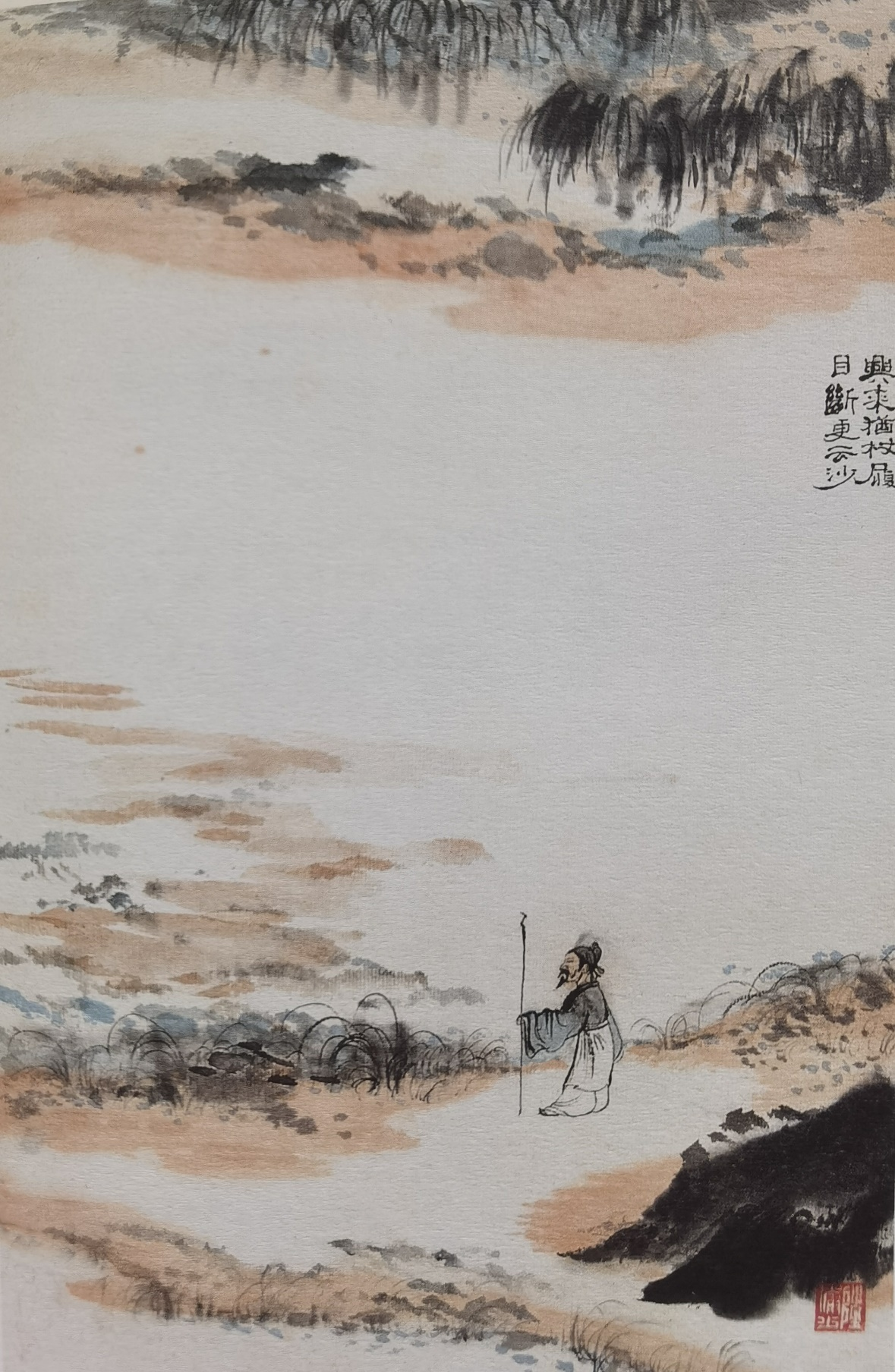圖:陸儼少《杜甫詩意圖冊》之《漾舟千山內,日入泊枉渚》