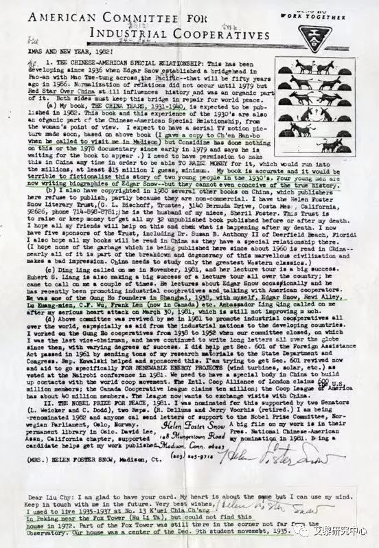?。ê?middot;斯諾的工合美國委員會(huì)信箋)