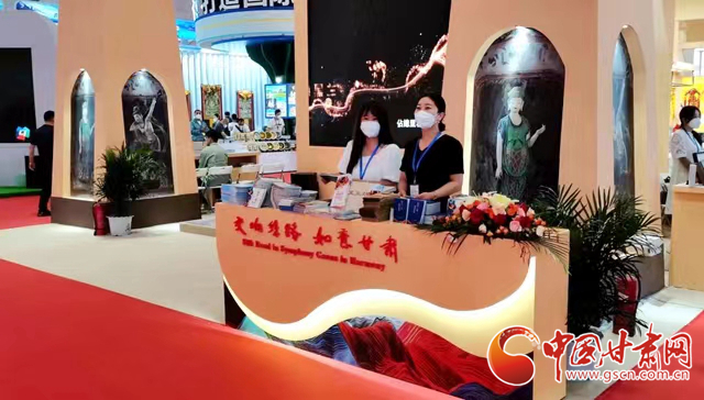 在云南昆明滇池國(guó)際會(huì)展中心7號(hào)館,甘肅省展館占地面積204平方米,共設(shè)有16個(gè)接待臺(tái)和4個(gè)非遺項(xiàng)目展示臺(tái),展臺(tái)整體以“交響絲路·如意甘肅”為主題,以絲綢之路元素為亮點(diǎn),以夏秋季旅游為宣傳重點(diǎn),全面展示了甘肅省文化旅游新形象。