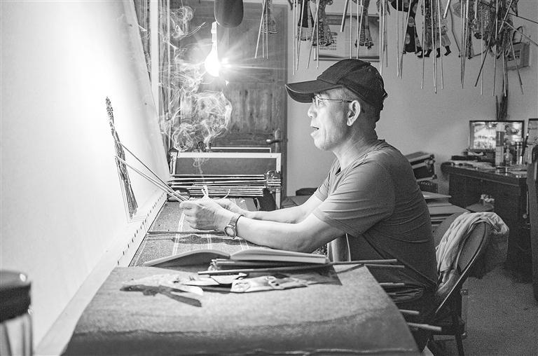 初秋,環(huán)江岸邊皮影戲苑里,藝術(shù)家們挑桿表演,坐唱念白,粗獷高亢,獨具風(fēng)格。鼓樂飛揚,上下翻騰的一個個“皮影”,動作或豐富激烈,或輕柔舒緩,不時博得觀眾的掌聲。