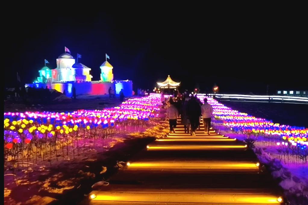 不僅城市周邊和景區(qū)里的冰雪盛會熱火朝天,一些縣區(qū)通過發(fā)掘冰雪資源舉辦冰雪旅游節(jié)也漸成時尚。1月1日,定西市岷縣牧馬灘首屆冰雪旅游節(jié)開幕式在麻子川鎮(zhèn)舉行,冰雕城堡、彩色花燈及滑雪道等將昔日牧馬灘裝扮成了一座冬日童話小鎮(zhèn),當(dāng)?shù)厝藗兏傁嗲皝韰⒓舆@場家門口的冰雪盛會。