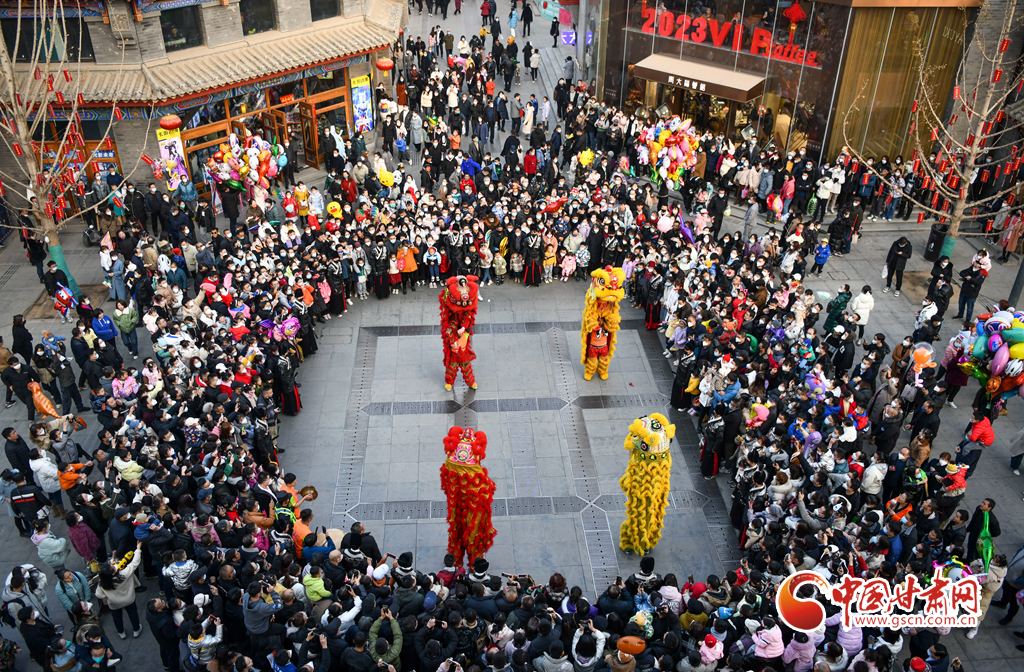 2月5日,甘肅省蘭州市七里河區(qū)蘭州老街,游人如織,格外熱鬧,人們賞舞獅、看表演 、猜燈謎、品美食,處處洋溢著熱騰騰的“煙火氣”。春節(jié)期間,蘭州老街開啟多場景布局、多業(yè)態(tài)融合、沉浸式消費等新春購物盛宴,吸引大量市民游客前來消費游玩,消費旺文旅熱,老街成為城市商業(yè)、文化和旅游的地標。