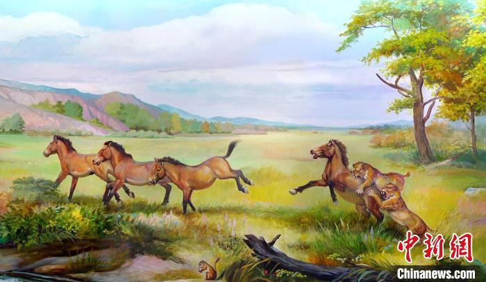 臨夏盆地早更新世真馬動(dòng)物群生態(tài)復(fù)原圖?!±顦s山 繪制 攝