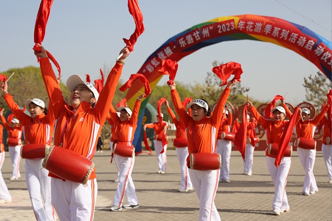 人民網(wǎng)蘭州4月9日電 (記者高翔)4月8日,“彩虹張掖·樂游甘州”2023花游季系列活動啟動儀式在甘肅省張掖市潤泉湖公園舉行。