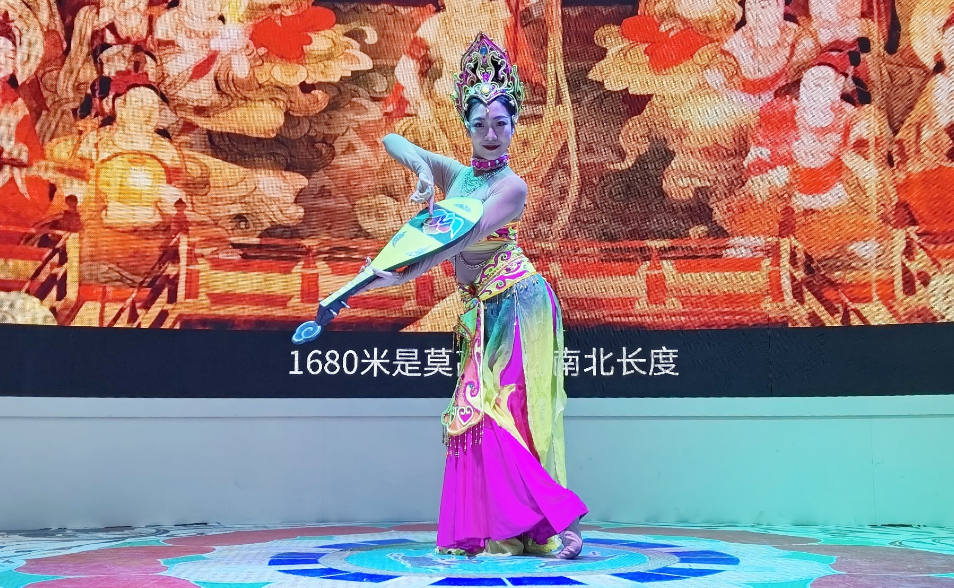 展覽現(xiàn)場,甘肅歌劇院的6名專業(yè)演員在甘肅展館和整個展館內(nèi)開展游園式巡演活動。演員們帶來的《年年有魚》《反彈琵琶》等精品舞蹈曼妙傳神,以一種更加“親民”的藝術(shù)形式吸引廣大中外客商和觀眾聚集甘肅展區(qū)領(lǐng)略甘肅風采。