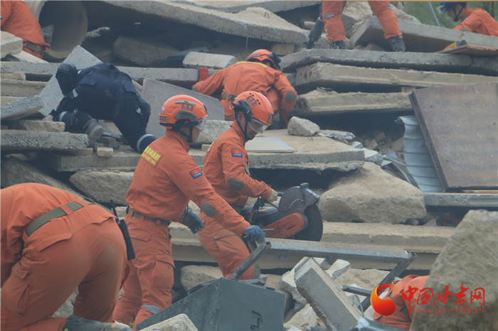坍塌的房屋,狼藉的廢墟,經(jīng)歷強(qiáng)震的震中,放眼望去滿目蒼涼,這是實(shí)戰(zhàn)演習(xí)現(xiàn)場(chǎng)設(shè)定的真實(shí)畫(huà)面。面對(duì)災(zāi)難,在廢墟中屹立的救援旗幟成為群眾的希望。如何在72小時(shí)黃金救援期盡最大努力救出傷者?實(shí)戰(zhàn)演習(xí)現(xiàn)場(chǎng),專業(yè)消防隊(duì)伍和民間應(yīng)急救援隊(duì)伍協(xié)同配合,以構(gòu)建綜合救援體系為目標(biāo)進(jìn)行磨合演練。