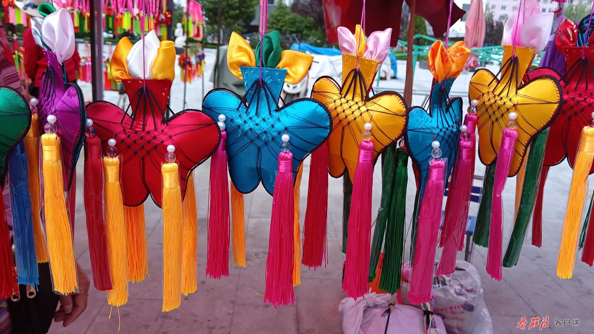 在莊浪過端午節(jié),少不了戴荷包、吃粽子。端午節(jié)來臨之際,莊浪縣到處都是待售的荷包,香飄四溢,讓人們?cè)缭绺兄蕉宋鐚⒔?/p>