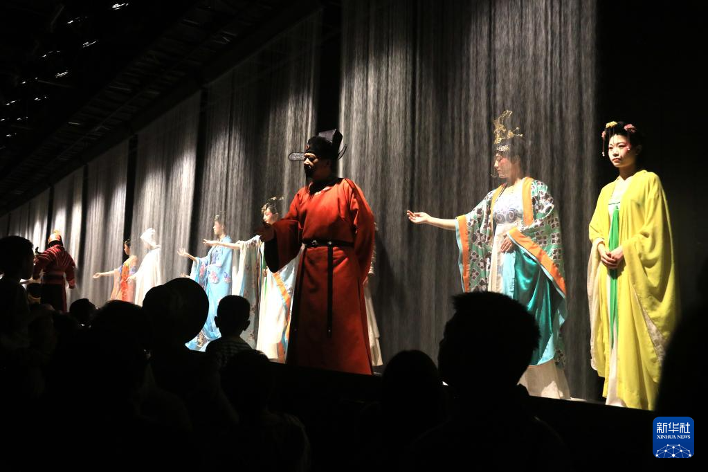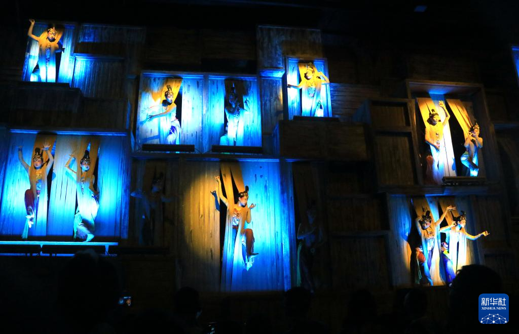 今年以來,脫胎于敦煌文化的洞窟沉浸式體驗劇《樂動敦煌》、室內(nèi)情景體驗劇《又見敦煌》、沙漠實景演出《敦煌盛典》和中國殘疾人藝術(shù)團(tuán)情景音畫劇《千手千眼》四場劇目在絲路名城甘肅敦煌同步上演,劇目將敦煌歷史底蘊(yùn)、服飾文化、樂舞文化等生動融合,為游客呈現(xiàn)出精彩絕倫的敦煌文化視覺盛宴,深受中外游客喜愛。截至8月10日,四大劇目今年已累計演出1175場次,觀看游客突破66萬人次。其中,《又見敦煌》從敦煌悠久的歷史文化中選取典型場景、線索人物,串起劇情的故事脈絡(luò),采用“流線式”空間體驗方式演出,讓觀眾在演出中步行“穿越”藏經(jīng)洞、莫高窟以及絲綢之路,身臨其境感受敦煌文化和絲路文化。