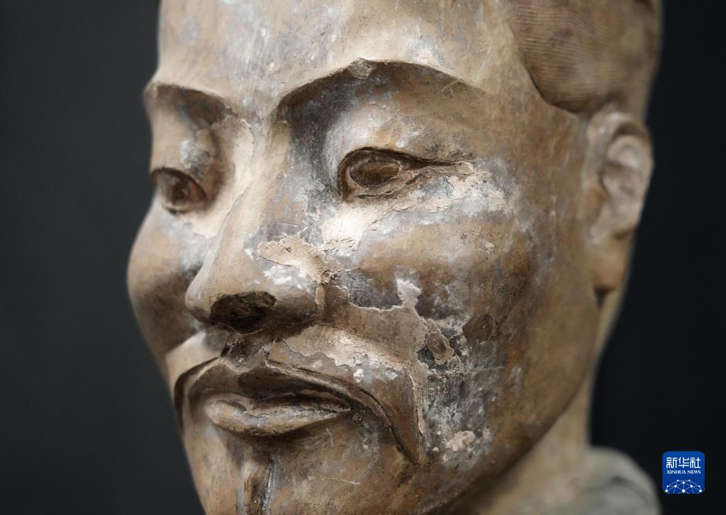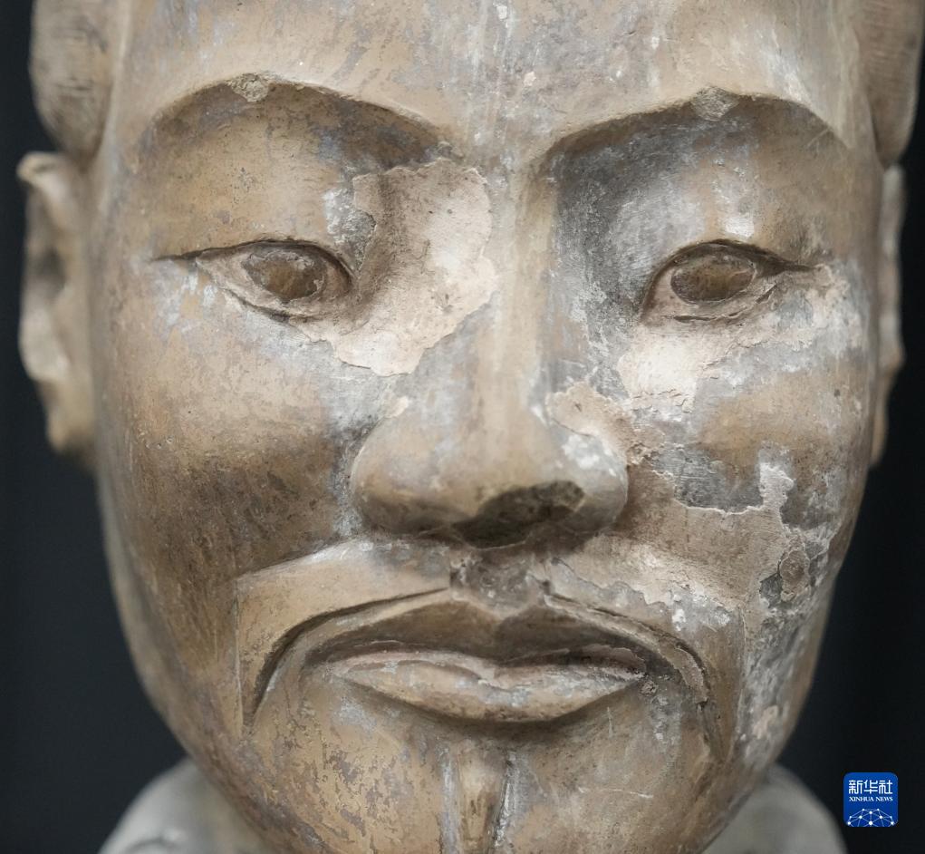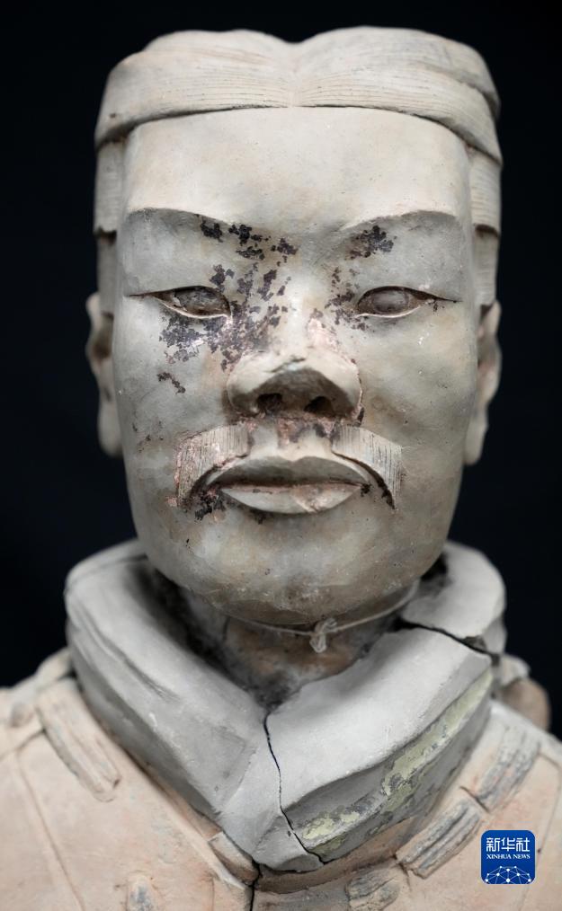 這是秦俑臉部彩繪還原修復(fù)后的樣貌(8月23日攝)。