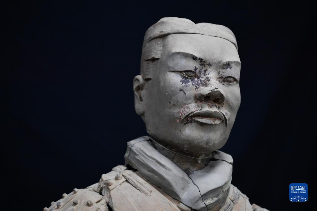 這是秦俑身上彩繪還原修復(fù)后的樣貌(8月23日攝)。