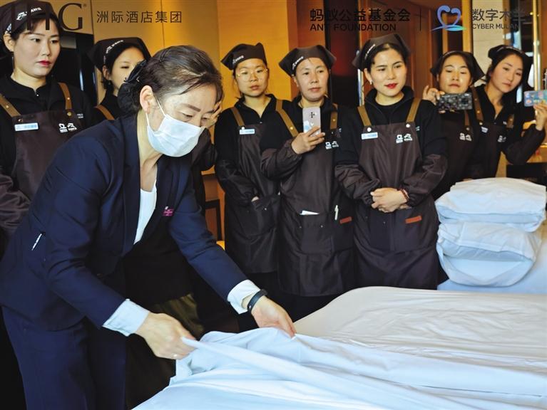中國甘肅網12月1日訊 據蘭州晚報報道 11月28日至30日,由螞蟻公益基金會、洲際酒店集團聯(lián)合舉辦的首期“數字木蘭”民宿管家研學營(以下稱“木蘭管家研學營”)在蘭州開班。來自臨夏、隴南、甘南、平涼、張掖等地15名鄉(xiāng)村民宿管家從服務一線來到蘭州皇冠假日酒店,參加為期3天的跟崗學習,系統(tǒng)提升對客服務、酒店管理等綜合技能。