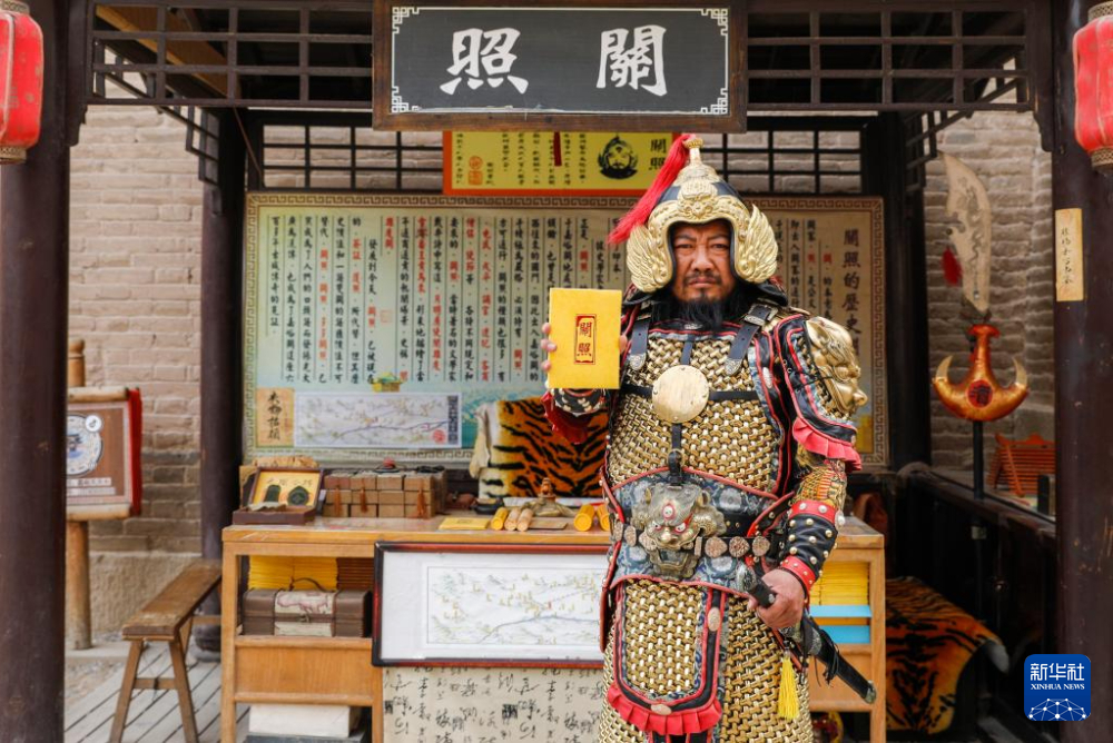 光頭絡(luò)腮胡的李森身披甲胄,在景區(qū)內(nèi)扮演明朝嘉峪關(guān)最高軍事長(zhǎng)官,為游客簽發(fā)文創(chuàng)產(chǎn)品“關(guān)照”(通關(guān)文牒)。自2001年起,他在嘉峪關(guān)“守關(guān)”20多年,親眼見證了嘉峪關(guān)旅游業(yè)的發(fā)展變化。