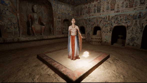 體驗(yàn)過后,游客還能在虛擬演播廳,實(shí)時(shí)拍攝一段真人與洞窟虛擬場景交互的視頻。無論身處何處,打開手機(jī)便能重溫這段“帶得走”的敦煌記憶。