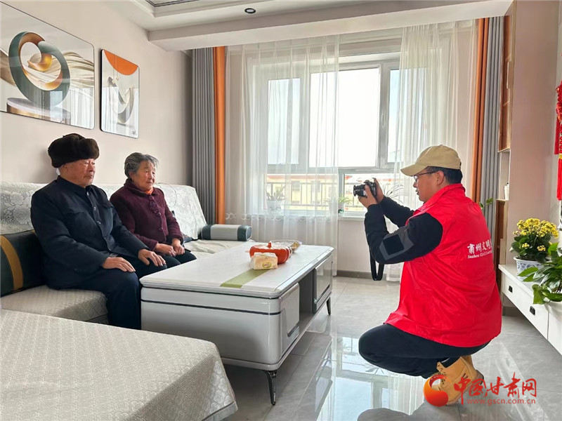 “大爺笑一笑,牽著大娘的手……”攝影志愿者們下村入戶,上門為村民拍攝全家福,用鏡頭為群眾定格幸福團(tuán)圓的瞬間,留住溫馨美好記憶。從選擇服裝到整理發(fā)型,從選取角度到調(diào)動情緒,志愿者們忙的不亦樂乎,在他們的引導(dǎo)和鼓勵(lì)下,老兩口由開始的緊張到后來的自信從容,一幕幕美好的生活片段被記錄了下來。