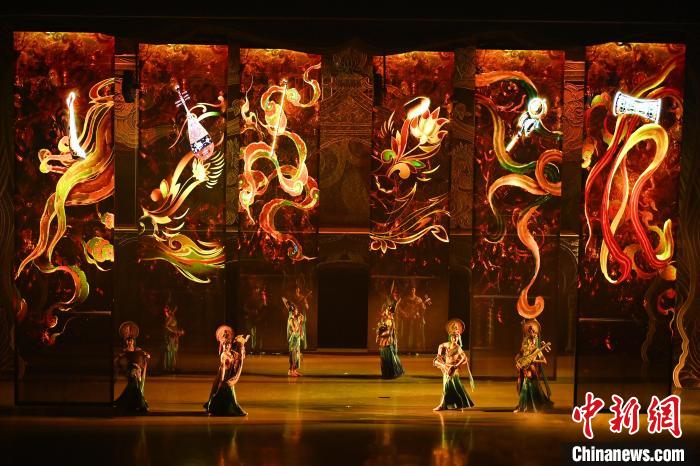 資料圖:2023年10月9日晚,演員在大型洞窟式沉浸體驗(yàn)劇《樂(lè)動(dòng)敦煌》中表演。張曉亮 攝