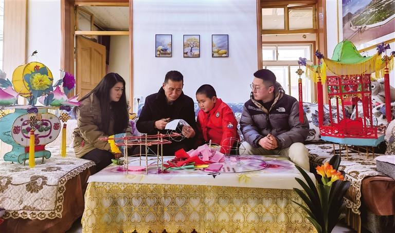 正月初十,記者走進魏世發(fā)家中,院中一盞盞精美的花燈擺放有序,色彩鮮艷、栩栩如生,呈現(xiàn)出皋蘭傳統(tǒng)手工花燈技藝的魅力。朱榮亮是石洞小學二年級學生,一次偶然的機會接觸到什川花燈,便產生了濃厚的興趣。他說:“以前見到花燈我就非常喜歡,今天媽媽專程帶我來到魏爺爺家學做花燈,非常有趣。以后有機會,我會帶著對花燈感興趣的同學來魏爺爺家跟他學做花燈。”