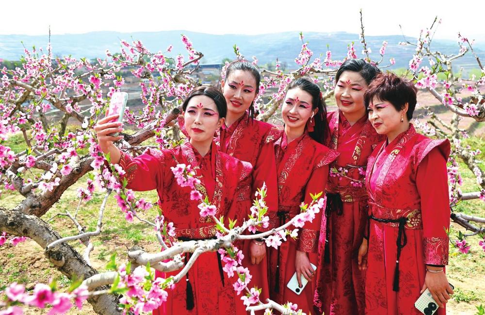 四月初,隴上杏花第一村的東鄉(xiāng)縣唐汪鎮(zhèn),近萬畝杏花競相盛開,漫山遍野飄香,吸引許多游人前來踏青、賞花,感受春意;秦安縣的萬畝桃花吐芳菲,游客絡(luò)繹不絕;“世界第一古梨園”的皋蘭縣什川鎮(zhèn)古梨園內(nèi),千樹萬樹梨花爭相競放,游客紛紛前來賞花看景,農(nóng)家樂的生意熱火朝天。