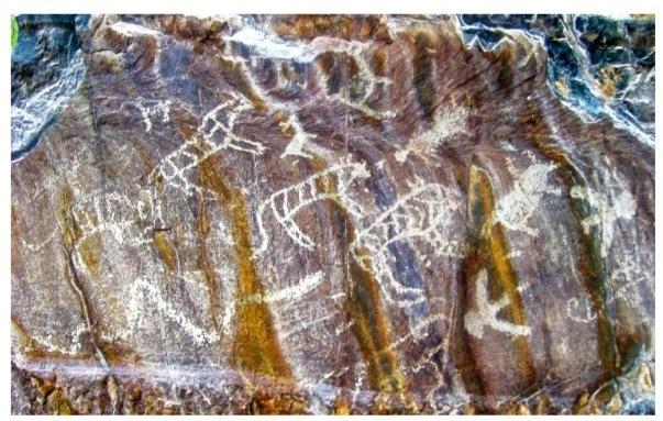 巖畫是古人在長期勞動(dòng)實(shí)踐中創(chuàng)造的藝術(shù)珍品,直接或間接地表現(xiàn)了永遠(yuǎn)逝去的遠(yuǎn)古社會(huì)面貌,在一定程度上展示了人類的太古文明、上古文明和中古文明。同時(shí),體現(xiàn)了人類的起源及其生產(chǎn)方式、經(jīng)濟(jì)發(fā)展、文字起源、社會(huì)生活的變遷。