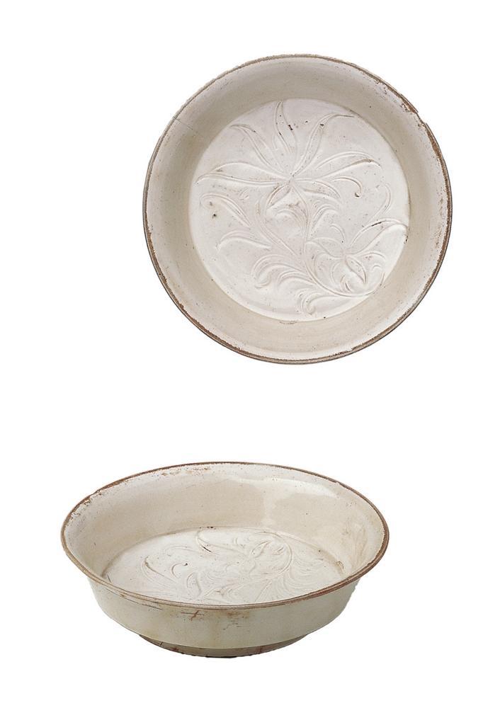從新石器時代的大汶口文化,到殷商時期,都有白陶的出現(xiàn),表明當(dāng)時人們對白色器物的追求,之后歷代有低溫白釉陶器,施白色化妝土的白瓷,都體現(xiàn)出人們對純凈的白色器物的喜愛。定窯自唐末期五代時便以高質(zhì)量細白瓷為主要產(chǎn)品。所燒瓷器不僅胎色白,而且胎質(zhì)細密堅致。這與窯爐燒造工藝提升息息相關(guān),北宋時,定窯開創(chuàng)了覆燒工藝,并改用煤為燃料,將窯爐溫度提升控制至1300攝氏度左右,進一步提高了白瓷產(chǎn)品的質(zhì)量。