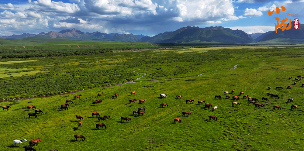 這里有比塞罕壩更壯觀的萬馬奔騰。藍天白云下,一匹匹雄健的駿馬在疾風中奔馳,從一望無際的草場上呼嘯而過,長鬃飛揚,浩浩蕩蕩。