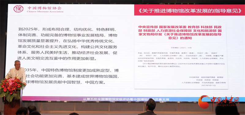 交流會上,中國博物館協(xié)會理事長劉曙光作了《從第五批全國博物館定級評估看中國博物館高質(zhì)量發(fā)展》的主旨發(fā)言,中央廣播電視總臺《簡牘探中華》節(jié)目總導(dǎo)演馬洪濤,中國建筑西北設(shè)計(jì)研究院有限公司副總經(jīng)理靳江,深圳市藝博堂數(shù)字文化科技集團(tuán)有限公司總經(jīng)理鄭洵,甘肅簡牘博物館副館長楊眉分別進(jìn)行了主題分享,為甘肅省博物館事業(yè)的高質(zhì)量發(fā)展建言獻(xiàn)策。