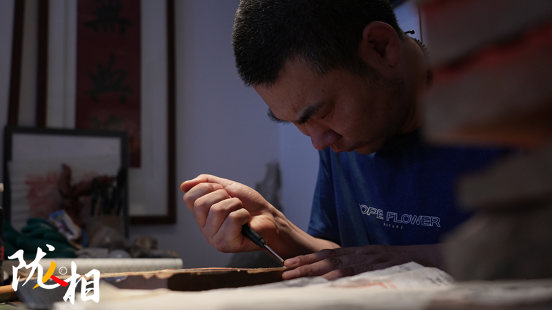 看似木刻版畫的具體制作流程并不復(fù)雜,包括定畫稿、復(fù)刻、拓印等步驟,但體現(xiàn)在具體的操作過程中,卻是日積月累的技藝沉淀。