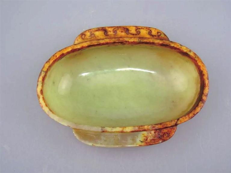 羽觴,多美妙風(fēng)雅的名稱,它的基本形制是扁橢圓,弧形壁,淺腹平底,餅形足或高足,口緣兩側(cè)各有一個(gè)半月形耳或方形耳。這種形制始于春秋戰(zhàn)國(guó),是由橢杯、舟等演變而來(lái),盛行于秦漢至魏晉南北朝,唐代以后便很少見(jiàn)到。其材質(zhì)有漆木、青銅、金、銀、玉、陶等,其中玉耳杯由諸侯王、列侯等身份地位比較高的人使用,漆耳杯使用者范圍較廣泛,上至帝王諸侯,下至一般貴族均可使用。