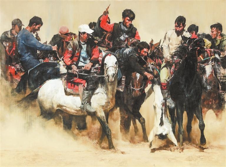 非遺——塔吉克叼羊 (油畫) 張國鋒 (本版文圖由甘肅省美術(shù)家協(xié)會(huì)提供)