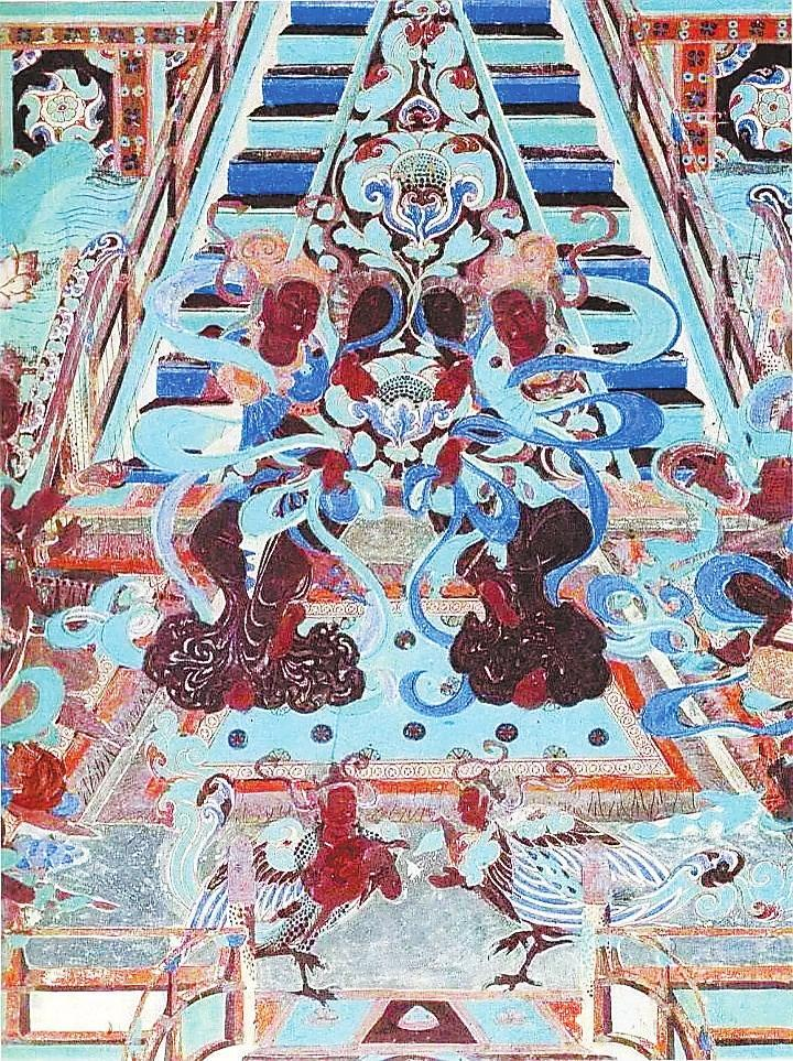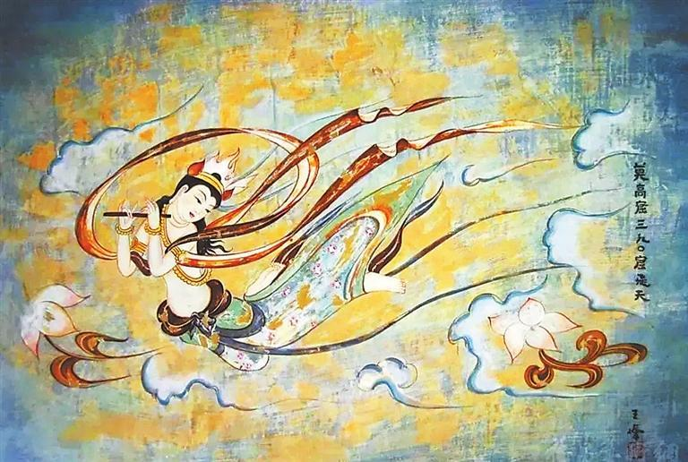 敦煌莫高窟,窟窟有壁畫,拼接起來長(zhǎng)達(dá)45000多平方米,有世界上“最大畫廊”之稱。這些壁畫中,幾乎每幅都有舞蹈形象,如在窟頂、龕楣、藻井遨游的飛天,憑欄上的天宮伎樂,經(jīng)變畫中的娛佛、敬佛的獻(xiàn)舞者——伎樂天,出行圖中跳著具有濃郁生活氣息的世俗樂舞,以及富有舞蹈美感的彩塑菩薩、天王力士等,琳瑯滿目,精妙絕倫。這些舞蹈形象充分反映了從十六國(guó)北朝至元代千余年來不同歷史時(shí)期的舞蹈服飾、形態(tài)、風(fēng)貌,為我們挖掘、整理、弘揚(yáng)中華民族舞蹈文化提供了十分珍貴的形象資料。