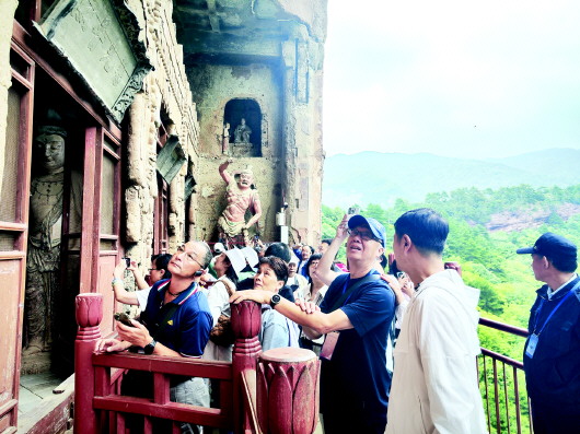 活動當(dāng)天,來自臺灣文博領(lǐng)域的專家學(xué)者一行,懷著對古老文化的敬仰與憧憬,在麥積山石窟感受石窟藝術(shù)的獨特魅力、在天水工業(yè)博物館探尋工業(yè)發(fā)展的歷史脈絡(luò)、在伏羲廟體悟中華始祖文化的博大精深、在天水市博物館領(lǐng)略豐富的歷史文物承載的歲月記憶、在天水古城品味古色古香的韻味與風(fēng)情……一系列豐富多彩的文化交流活動,讓他們近距離感受到了古城天水的風(fēng)景名勝、文化遺產(chǎn)保護傳承及山川風(fēng)物。