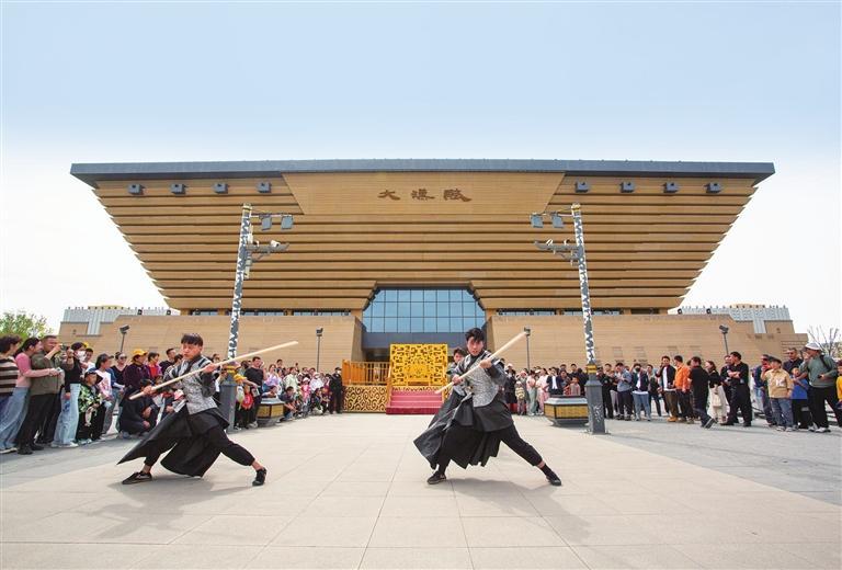 近期,“漢宴”也收獲了大量的關(guān)注。這個河西首家漢文化沉浸式體驗餐項目,融漢文化展示、歌舞演藝、場景體驗、美食品味于一體,打造餐飲消費新場景,讓游客身臨其境感受文化魅力。