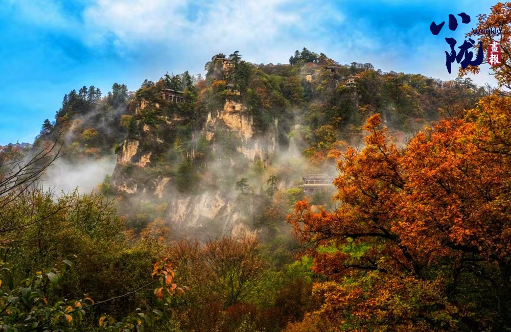 國家5A級旅游景區(qū)平?jīng)鲠轻忌?,四季風(fēng)景各有不同,尤其到了初冬時節(jié),漫山彩林中藏著古剎宮觀,別有一番意蘊。
