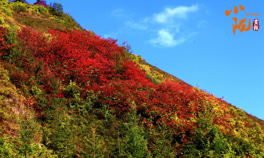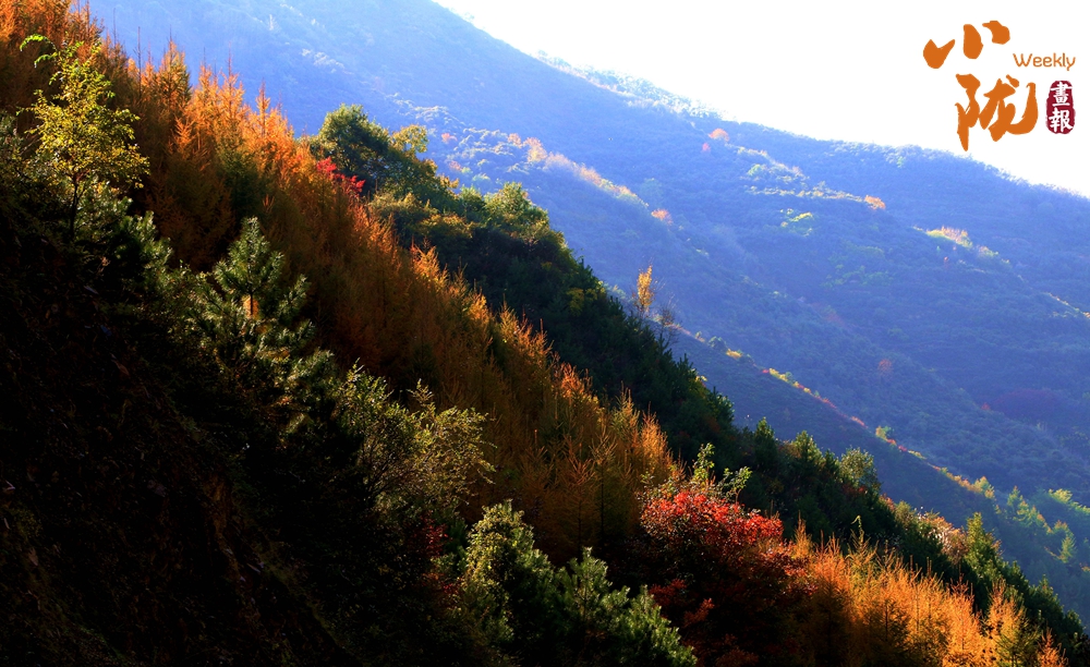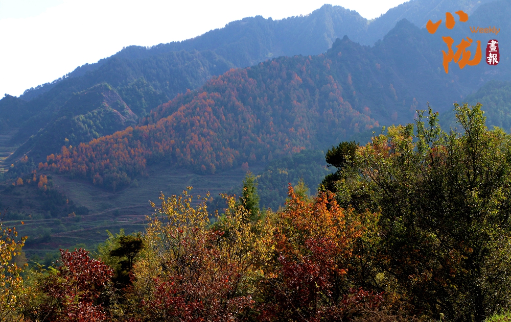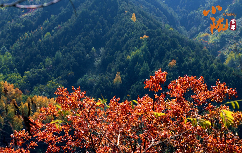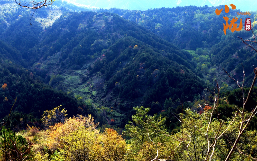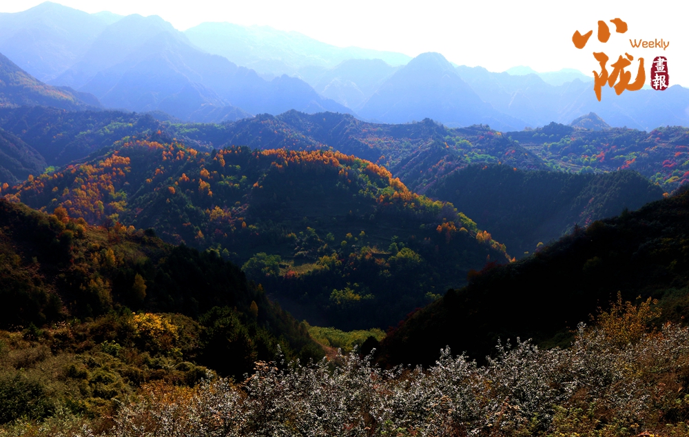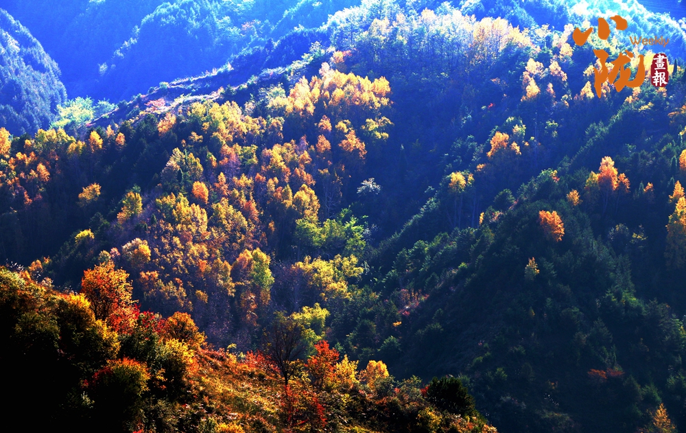 在陽光照耀下,中梁山披上多彩盛裝,山川、溝壑層林盡染,美景如畫。