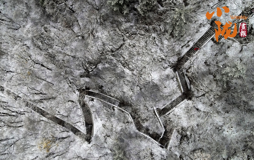 瑞雪灑落古道,籠住層林,覆蓋山巒,古剎白雪交相輝映,如夢(mèng)似幻。