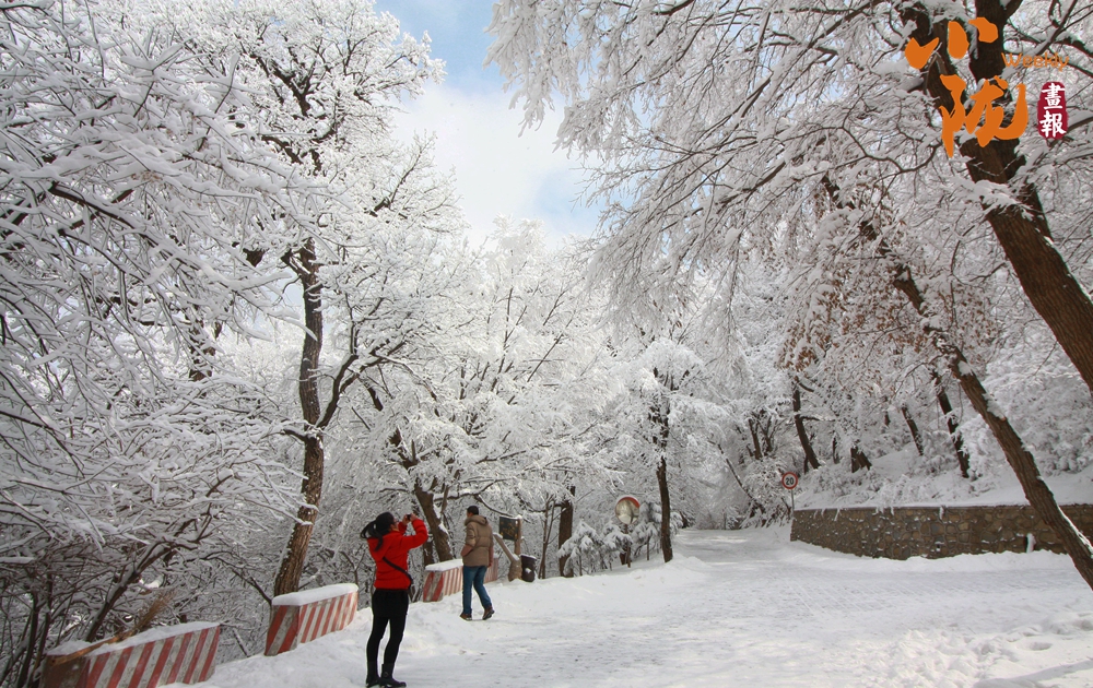 雪花褪去了樹葉的枯黃,整個(gè)崆峒山沉浸在一片白茫茫的世界里,景色美妙如畫。