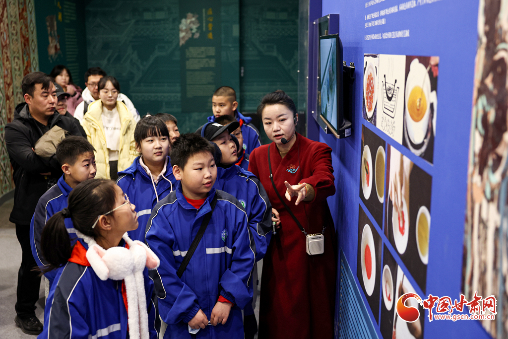 12月29日,蘭州市城關(guān)區(qū)安樂(lè)村小學(xué)學(xué)生在家人的陪同下來(lái)到敦煌研究院蘭州分院敦煌藝術(shù)館,欣賞“覺(jué)色敦煌 莫高精神”敦煌石窟藝術(shù)展,在周末時(shí)光近距離感受敦煌文化藝術(shù)的魅力。
