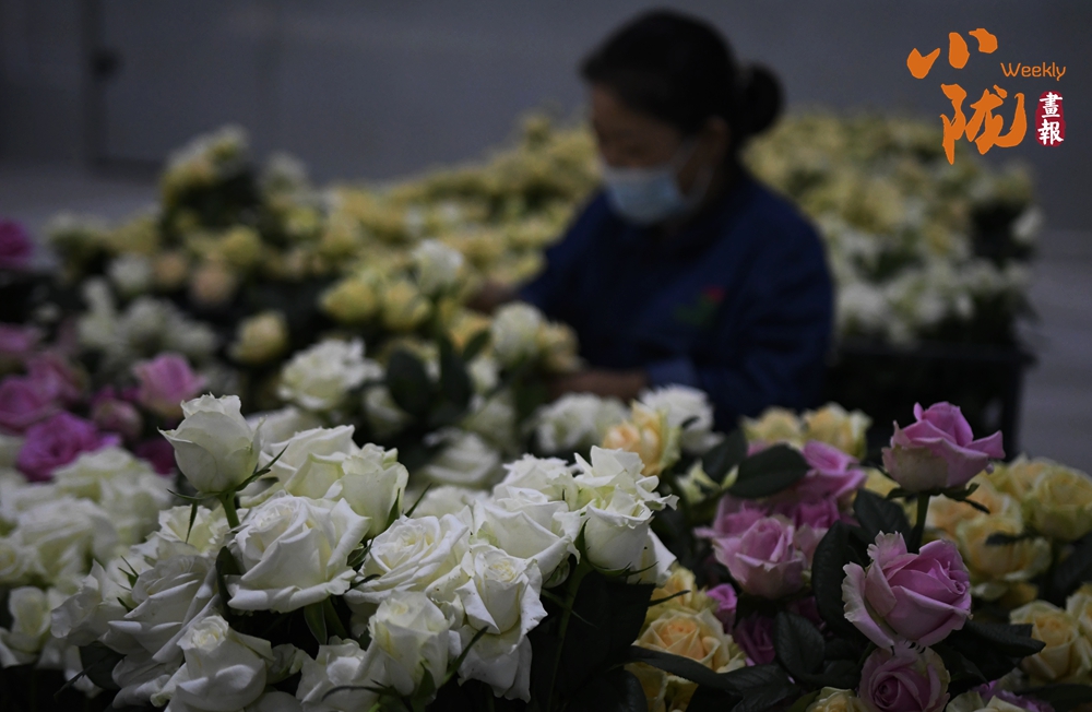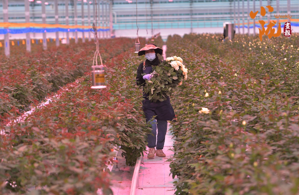 工作人員忙著采摘、分揀、包裝,一束束鮮切玫瑰從這里搭乘冷鏈物流,不僅暢銷國(guó)內(nèi),還遠(yuǎn)銷海外,成為“一帶一路”上一張靚麗的名片。