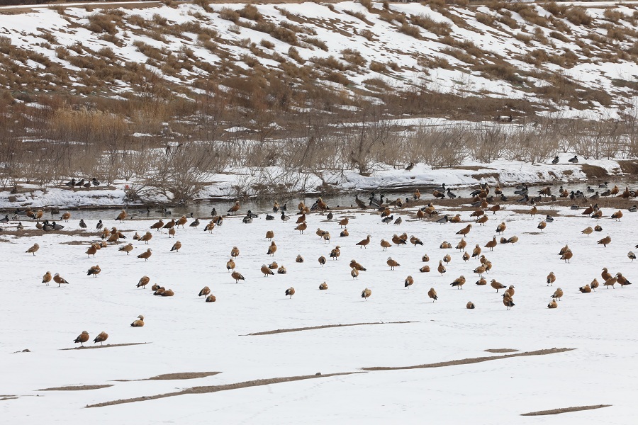 近日,甘肅秦王川國家濕地公園迎來候鳥遷徙高峰,國家二級(jí)保護(hù)動(dòng)物斑頭秋沙鴨、白骨頂,成群結(jié)隊(duì)的赤麻鴨、綠頭鴨以及優(yōu)雅的白鷺構(gòu)成“萬羽翔集”的生態(tài)畫卷,印證濕地生態(tài)系統(tǒng)的顯著改善。
