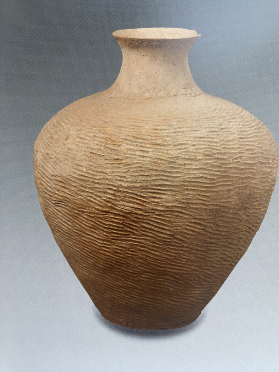 出土繩紋雙耳尖底瓶(鎮(zhèn)原縣博物館藏)