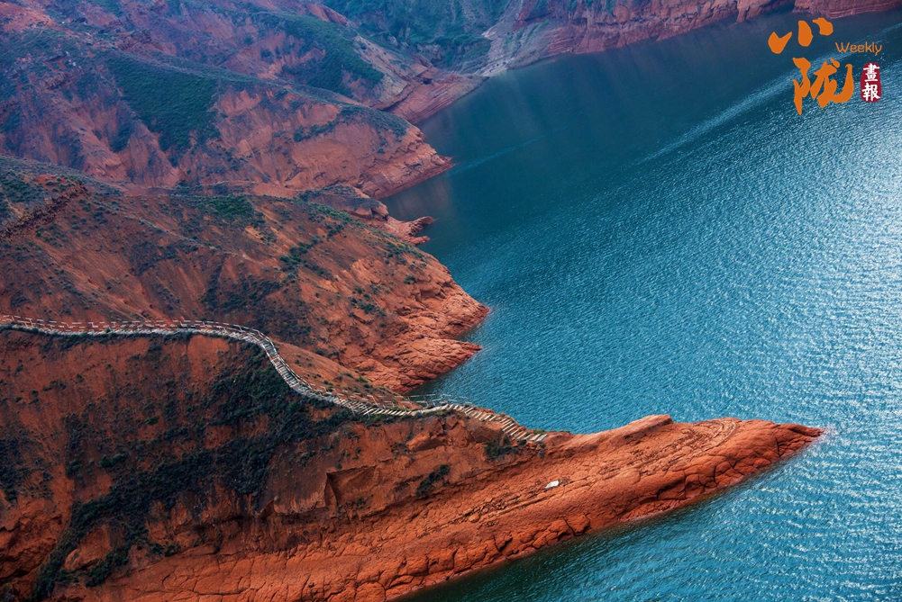 附近山塬如“神龍?zhí)阶?rdquo;般伸進(jìn)庫區(qū),碧綠水色與赭色丹霞相映成趣,紅巖綠水相融相撞,沒有絲毫違和感。從大橋邊的公路上山,可以鳥瞰整個庫區(qū)和大橋美景,開闊的水域讓你心曠神怡,一道飛虹橫跨波光粼粼的庫區(qū),夕陽照耀下,滿眼瑰麗。